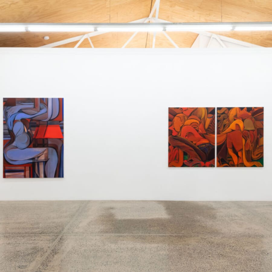 In New Paintings, refusing the crowded allure of overt transgression or elementary eroticism, here the artist triangulates eros, containment failure, and stratification, all demanding attention as its dominant mode of encountering. This yields an intimate and visceral experience of the uncanny where, as Freud suggests, ‘everything that ought to have remained hidden and secret has become visible’.