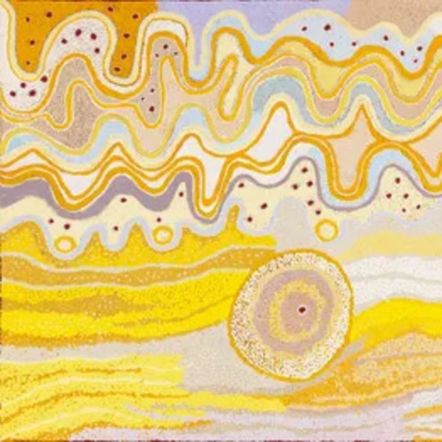 The Nowee Sisters are the daughters of esteemed artist and senior, highly respected lawman Brandy Tjungurrayi (1930-2012) and artist Nowee Nangala (c.1930-c.1998). The sisters paint the designs and cultural knowledge of their parents’ Country; their father’s Country, Nyilla around Puntujalpa (Jupiter Well) in the Great Sandy and Gibson Desert Region of Western Australia, and their mother’s Country, Minyurrpa, situated between Puntujalpa (Jupiter Well) and the Canning Stock Route.
