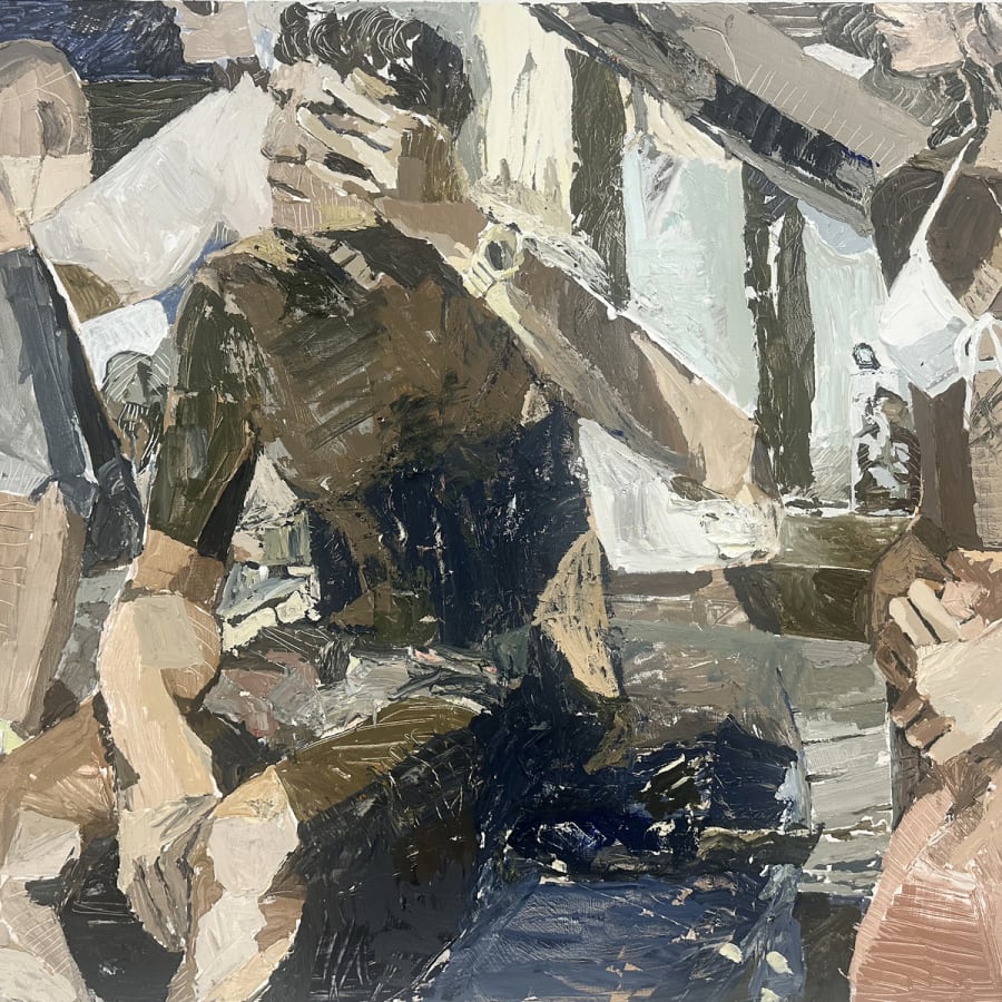In her Southern Highlands studio, Young paints what surrounds her: food on the kitchen table, the movement of light across a wall, her son on the brink of adolescence. Working fast between school hours, each session is like a sprint, brief and concentrated, leaving visible traces of their making. The paintings feel alive with movement and thought, their brushwork recording moments of hesitation, adjustment, neurosis and delight.